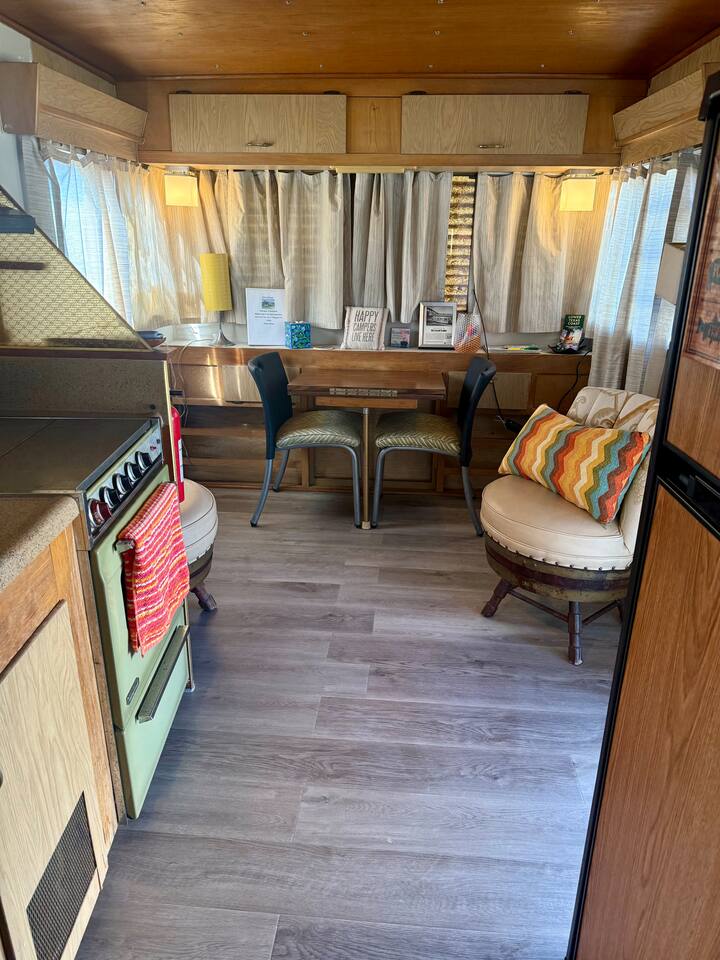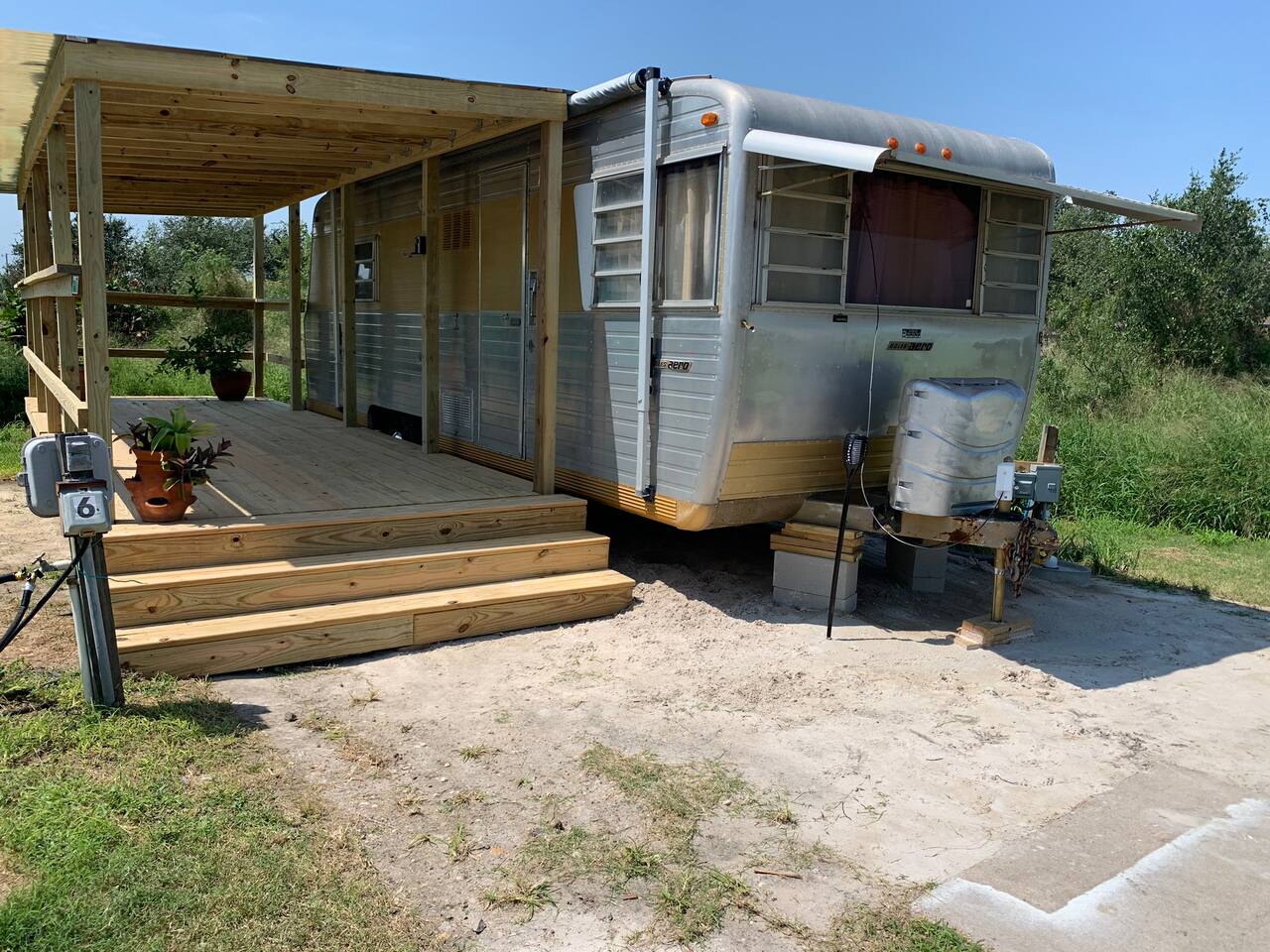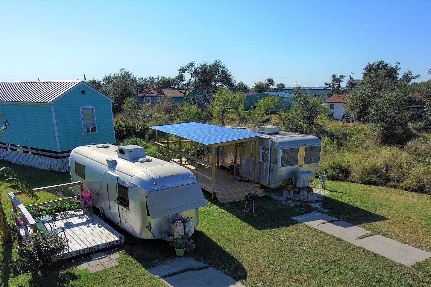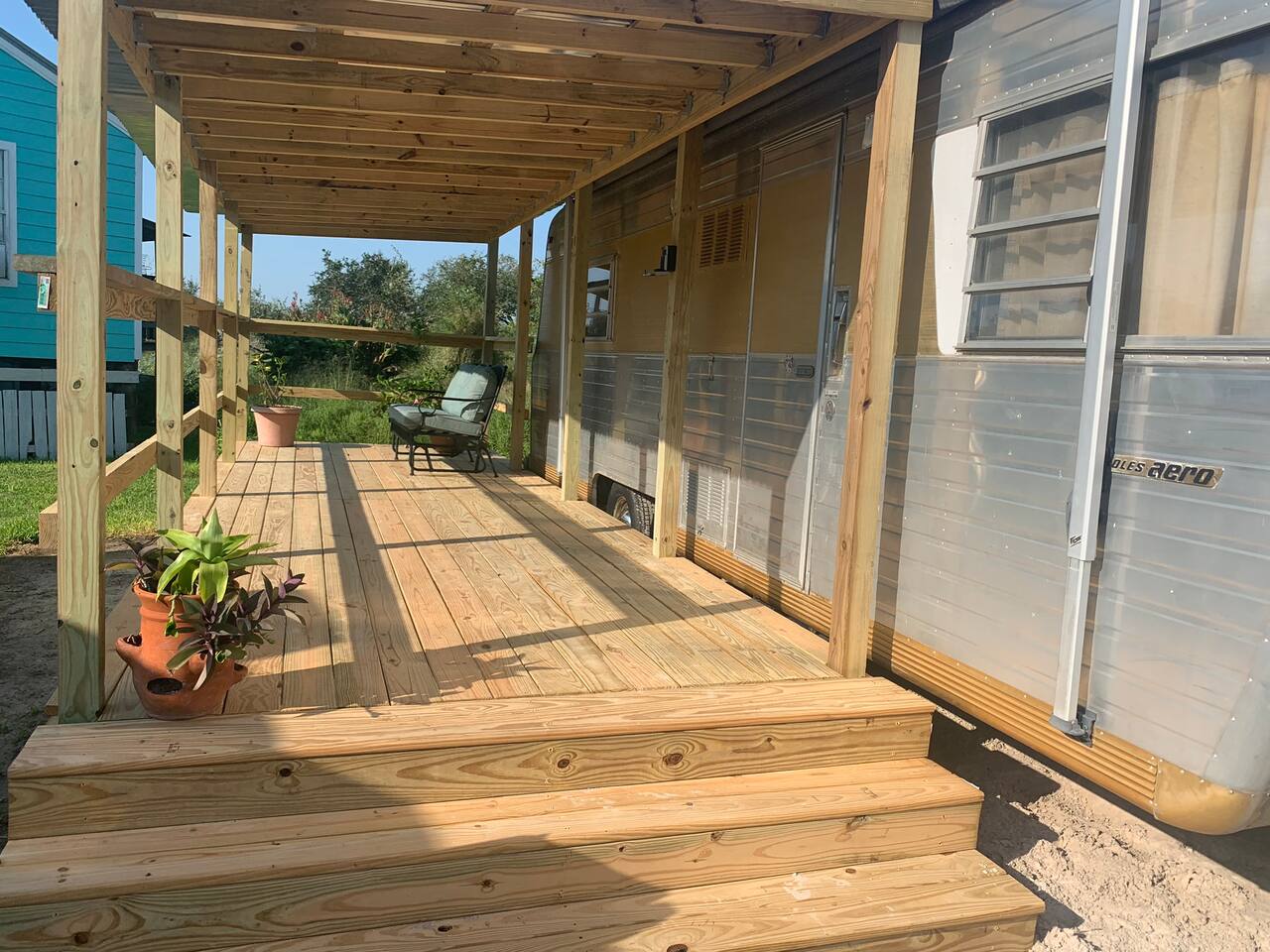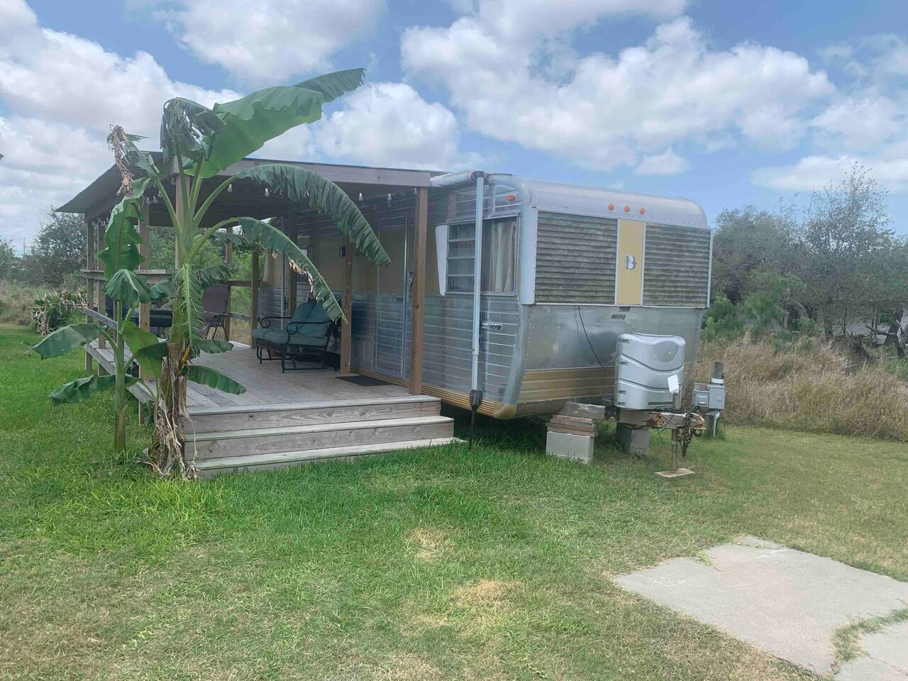 Experience the charm of glamping in this vintage gem,. The open layout features a combined kitchen, living room, and dining area, along with a cozy bedroom with a queen bed. Enjoy high-speed WiFi and a TV for streaming, while the rest of the ambiance transports you back to the vibrant 60s. Situated just 4 miles from Rockport Beach, this location boasts fantastic fishing opportunities. We welcome well-behaved pets. Additionally, guests can enjoy shared access to a micro resort pool and hot tub.