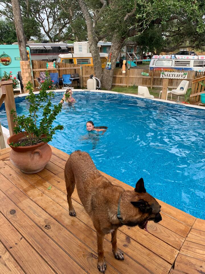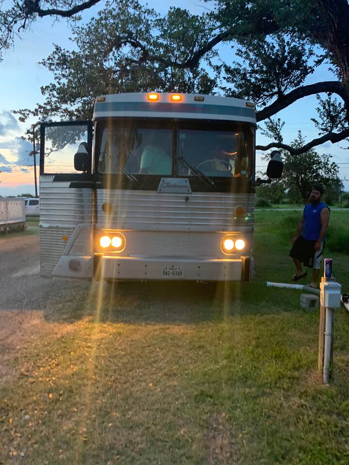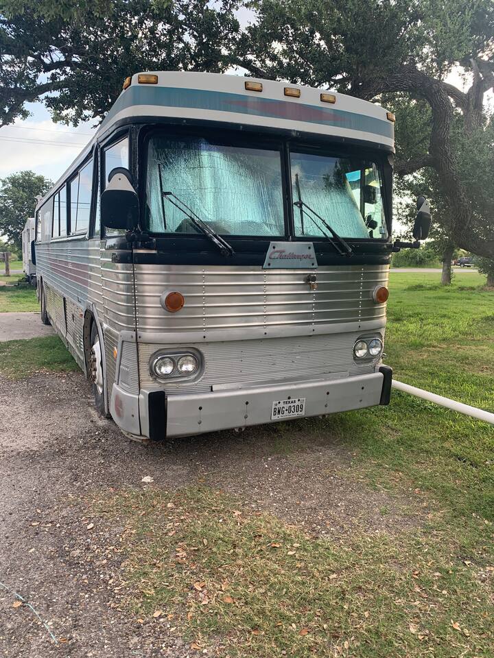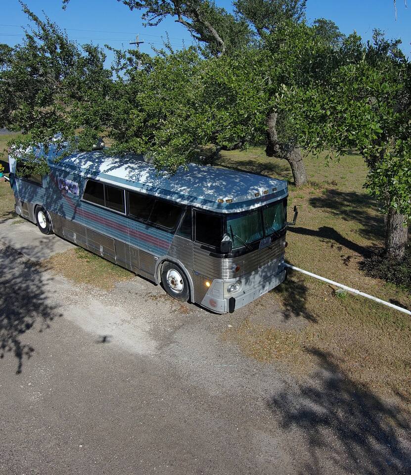 Step back in time with this iconic bus, famously used by a 60s rock band (imagine the stories it could tell!). Perfect for adventure enthusiasts, this is the ultimate glamping experience Well-mannered pets are warmly welcomed. Enjoy a charcoal grill by the pool area and watch the stars from the hot tub. Just a five-minute drive to Rockport Beach, this bus is part of a micro resort featuring shared amenities like a pool, hot tub, and dog park.